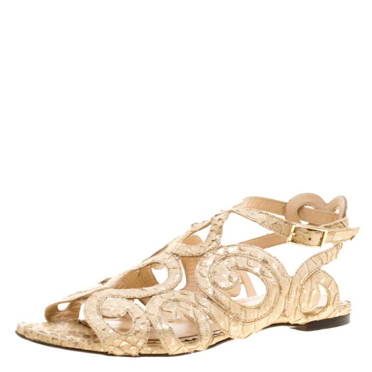 مملوكة مسبقًا صندل شارلوت اوليمبيا إليسا جلد ثعبان مزخرف بيج مقاس 36