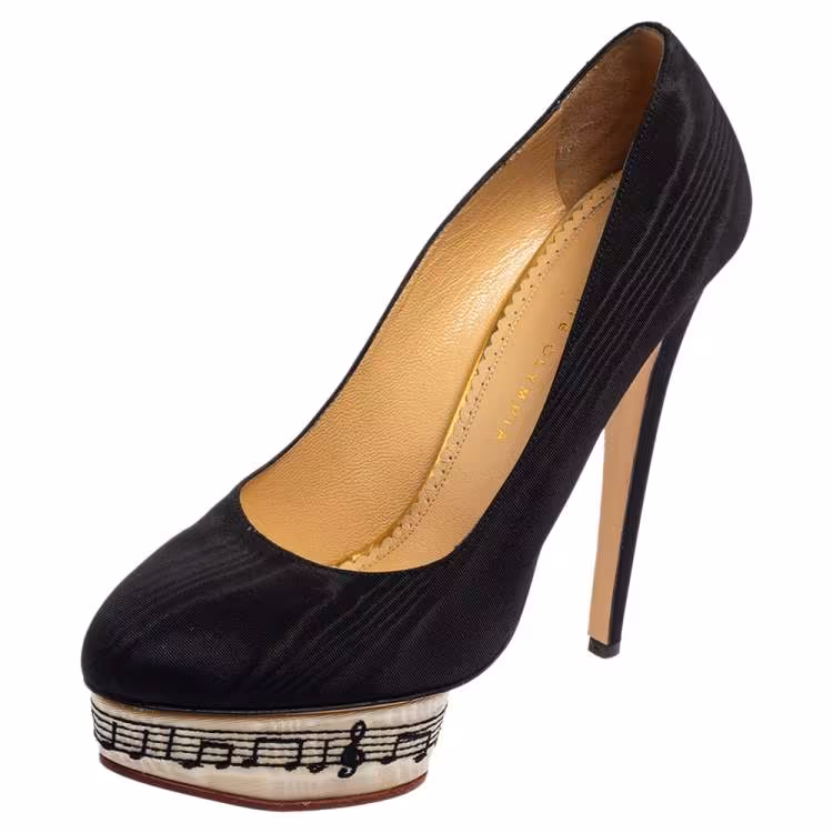 مملوكة مسبقًا حذاء كعب عالي شارلوت اوليمبيا دوللي كانفاس أسود نعل سميك مقاس 41