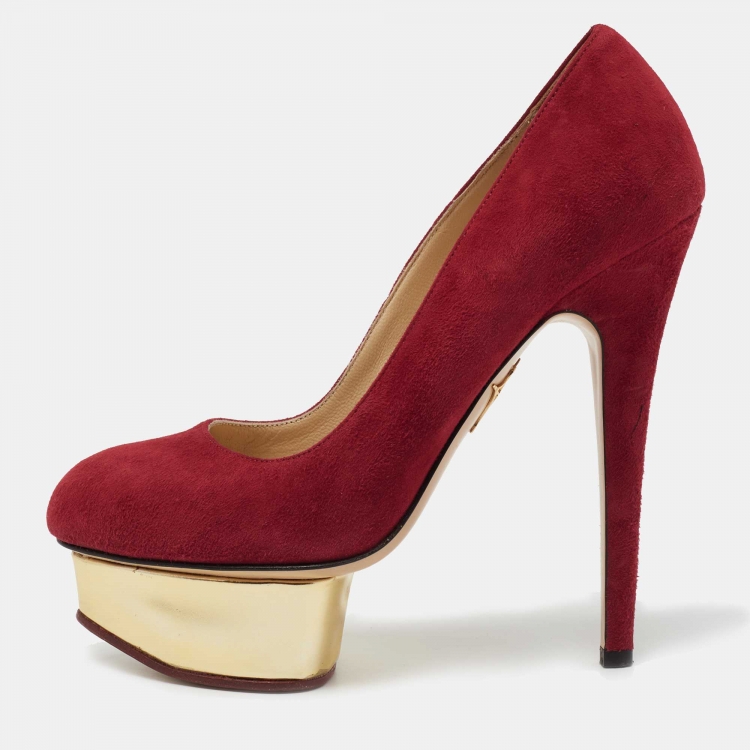 Charlotte Olympia Deep Red Suede Dolly Platform Pumps Size 36