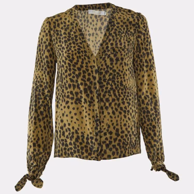 بلوزة كلوي حرير مطبوعة أخضر تاوبيه بأزرار أمامية مقاس وسط - ميديوم
