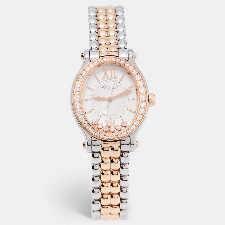 مملوكة مسبقًا ساعة يد نسائية شوبارد هابي سبورت 278602-6004 ستانلس ستيل ذهب وردي عيار 18 فضية 29 مم