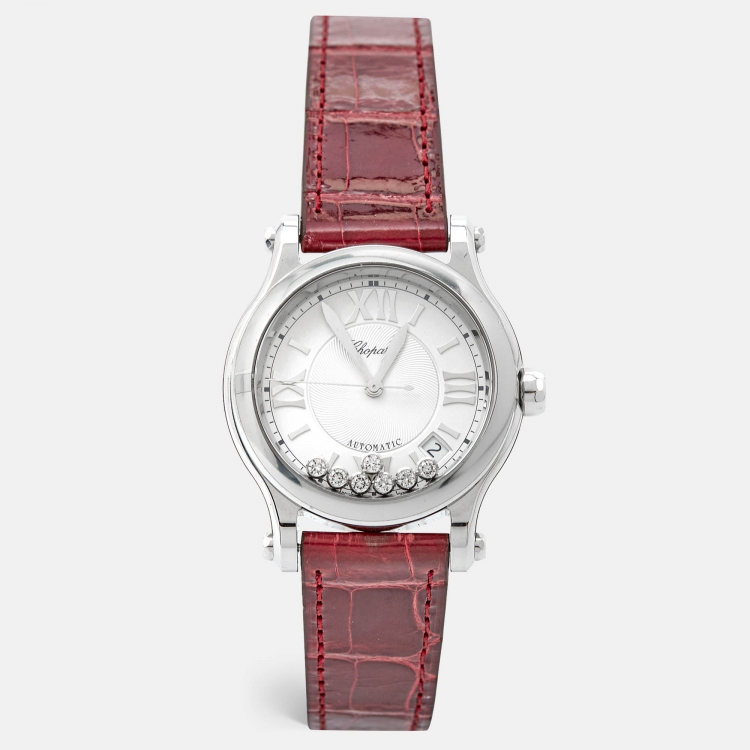 Chopard Silver Diamond Stainless Steel Alligator Leather Happy Sport 278559-3001 Women's Wristwatch 36 mm