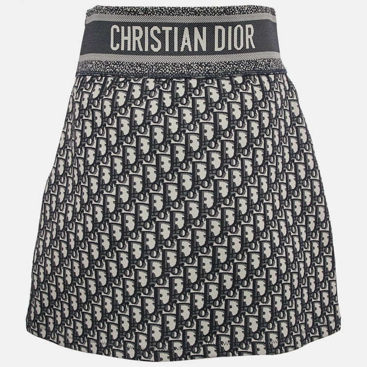 Christian Dior Blue Oblique Stretch Nylon Mini Skirt S