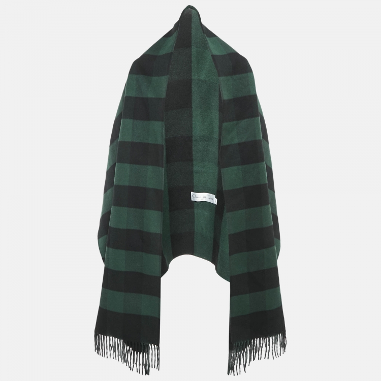مملوكة مسبقًا Christian Dior Green/Black Stripe Wool Fringed Scarf