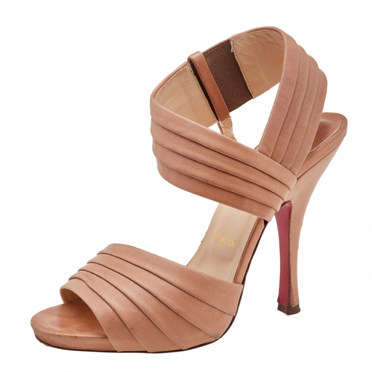 Pre Owned صندل كريستيان لوبوتان جلد بيج طيات سير كاحل مقاس 38