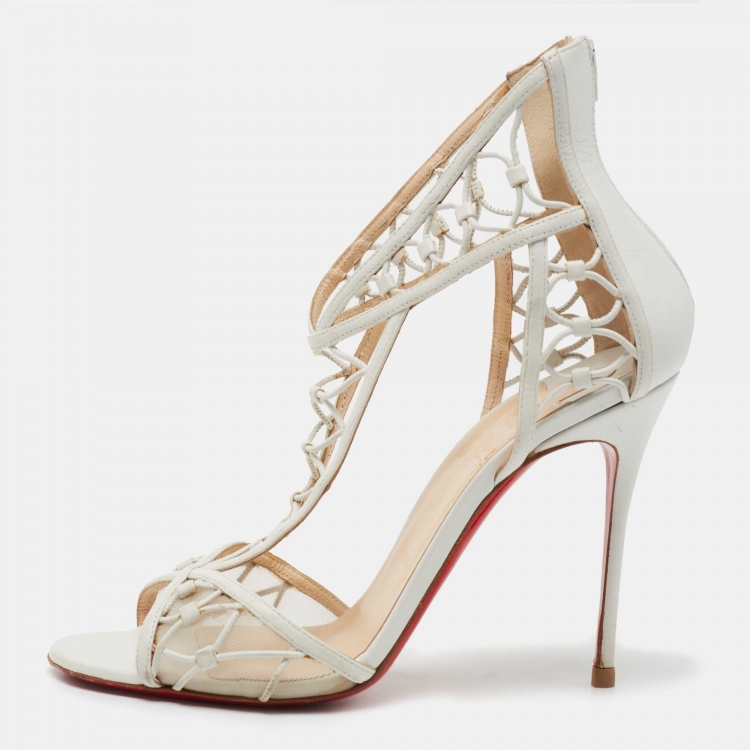 Christian Louboutin White Mesh and Leather Martha Lattice Sandals Size 40