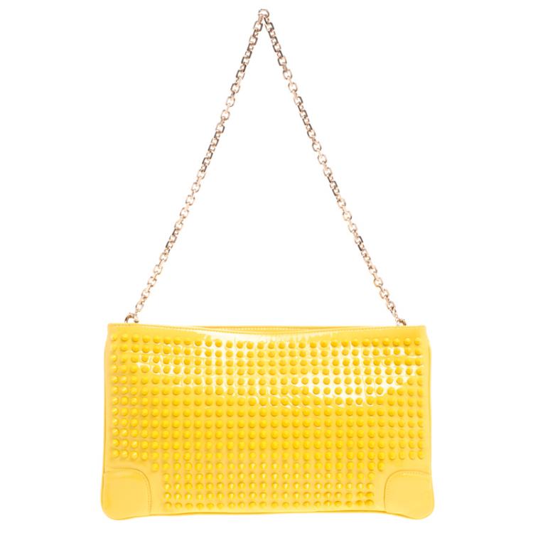 حقيبة كلاتش كريستيان لوبوتان لوبيبوش مرصعة جلد لامعة صفراء