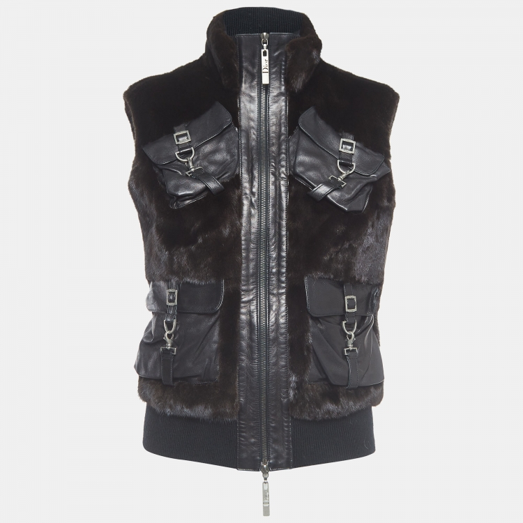 مملوكة مسبقًا Christian Dior Boutique Black Fur and Leather Sleeveless Zipper Jacket M