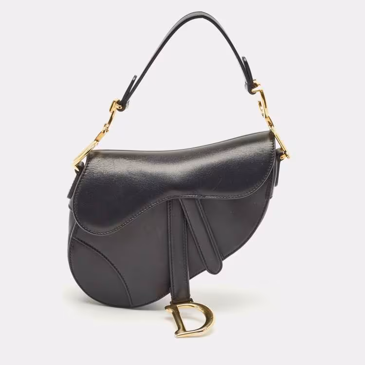 مملوكة مسبقًا حقيبة سرج ديور جلد أسود صغيرة