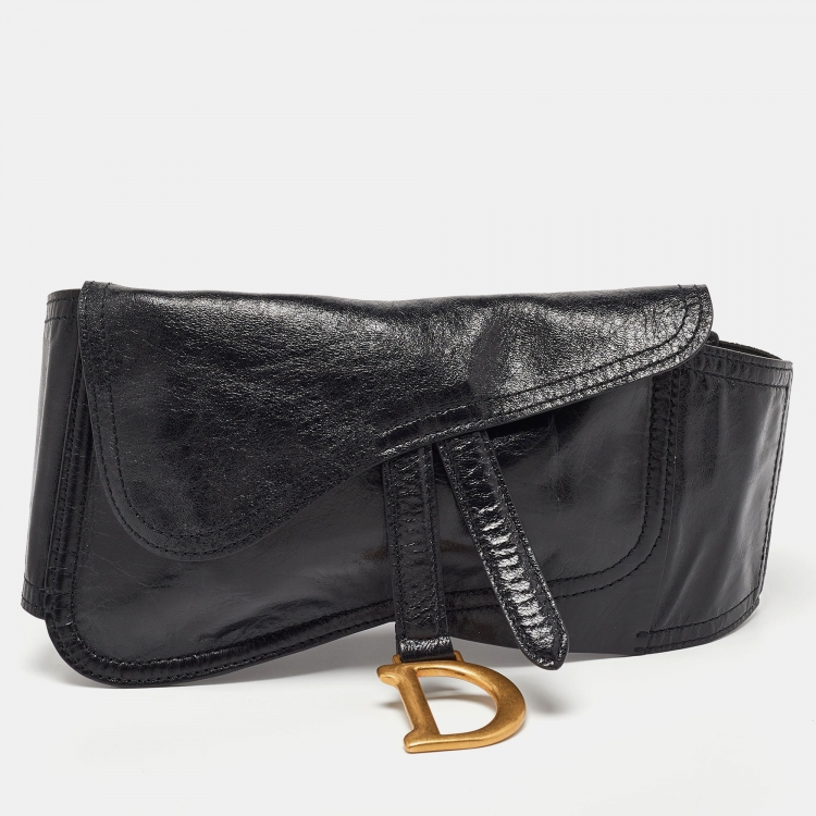 مملوكة مسبقًا حقيبة خصر ديور سادل جلد أسود لامع بحزام