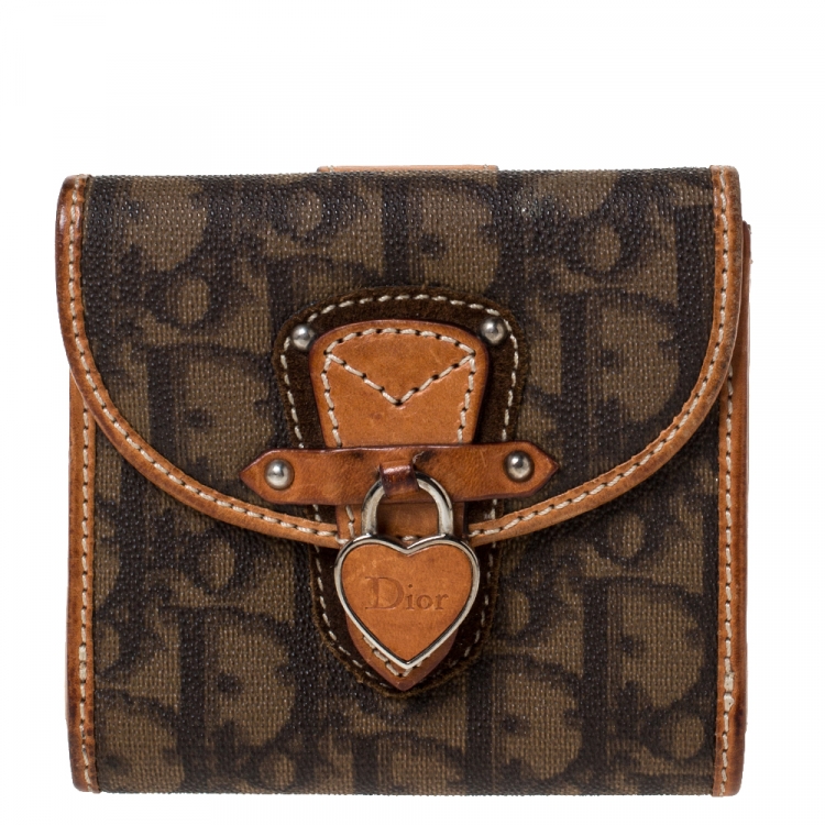 مملوكة مسبقًا محفظة ديور كومباكت رومانتيك جلد وكانفاس مقوى طباعة أوبليكل بنية