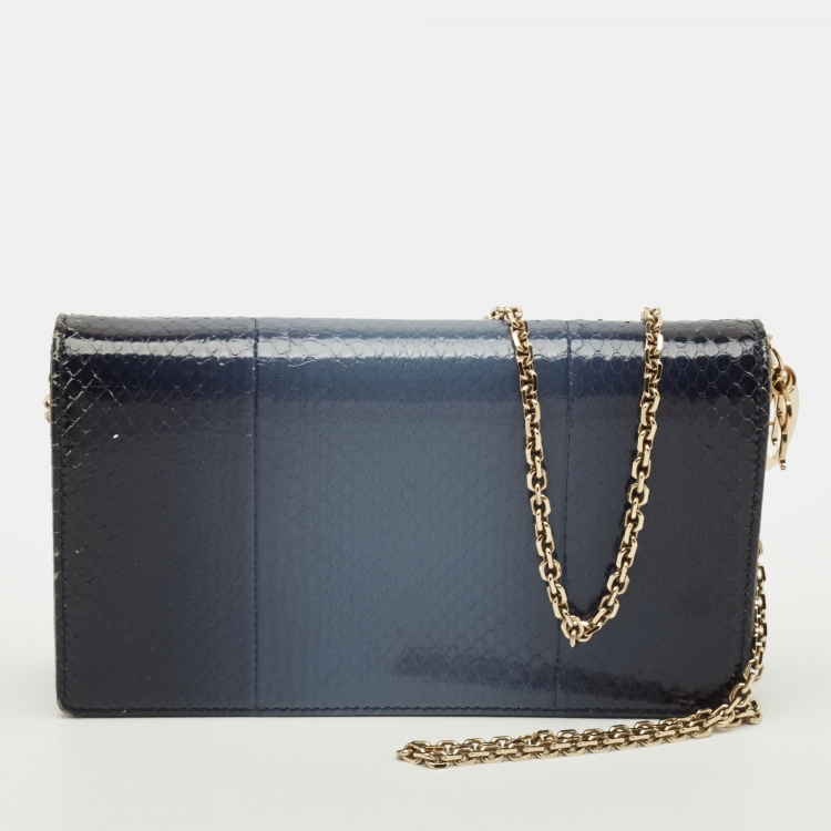 Pre Owned حقيبة كلاتش برباط جلد ثعبان لون أزرق داكن للسيدة ديور مع سلسلة