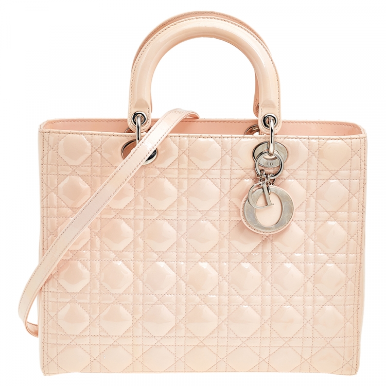 Pre Owned حقيبة يد ديور ليدي ديور كبيرة جلد لامع كاناج وردي فاتح