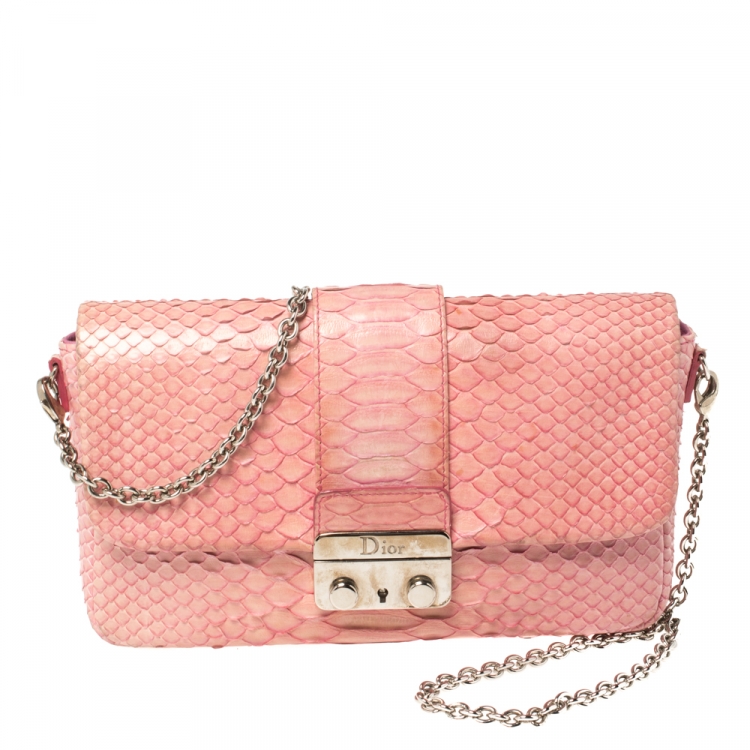 مملوكة مسبقًا حقيبة كتف ديور ميس ديور صغيرة جلد ثعبان �وردية