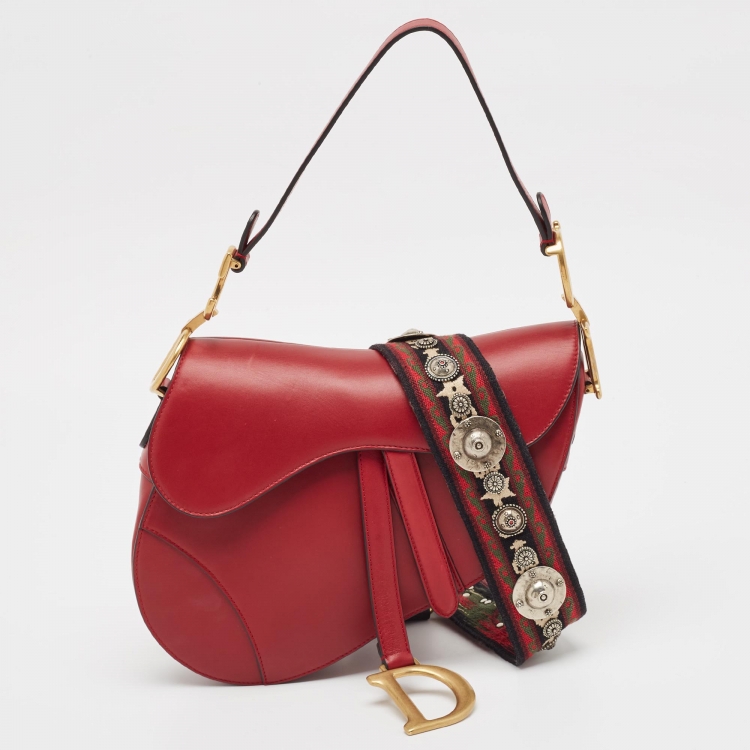 Dior Red Leather Saddle Bag