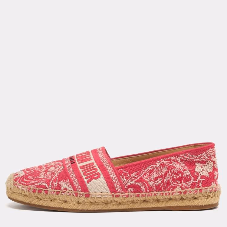 Pre Owned حذاء إسبادريل فلات ديور قماش مطرز غرنفيل أحمر/أوف وايت مقاس 38