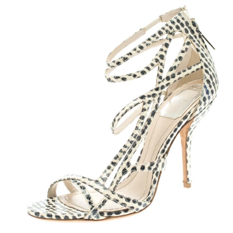 مملوكة مسبقًا صندل ديور جلد ثعبان مرقط ثنائي ال�لون بسيور متعددة مقاس 37.5