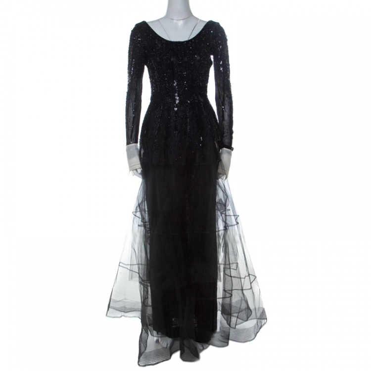 مملوكة مسبقًا فستان ديور فينتدج تول أسود مزخرف بأساور متباينة ظهر مكشوف M