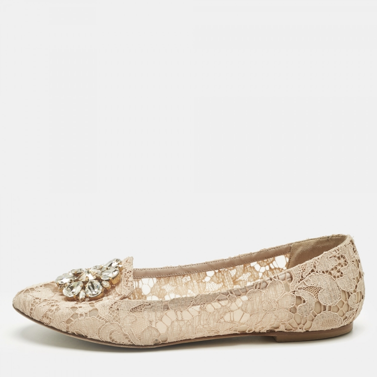 مملوكة مسبقًا حذاء باليرينا دولتشي أند غابانا دانتيل بيج مزخرف كريستال مقاس 39