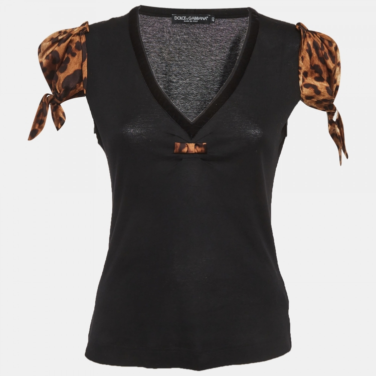 توب دولتشي أند غابانا ساتان وجيرسي بطبعة نمر أسود مقاس صغير - سمول