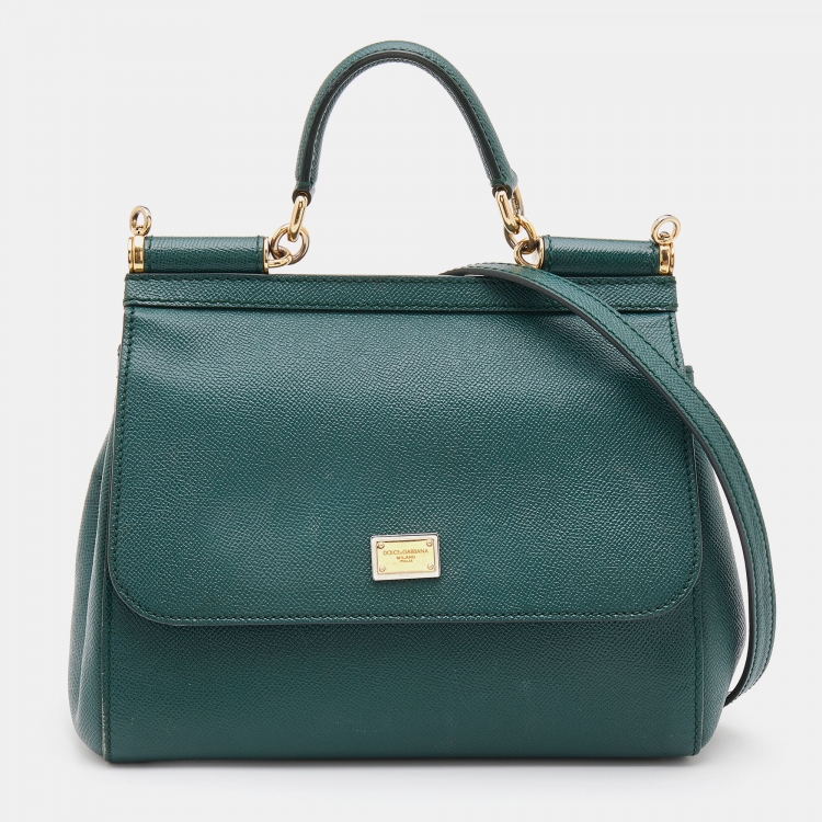 Dolce & Gabbana Green Leather Medium Miss Sicily Top Handle Bag
