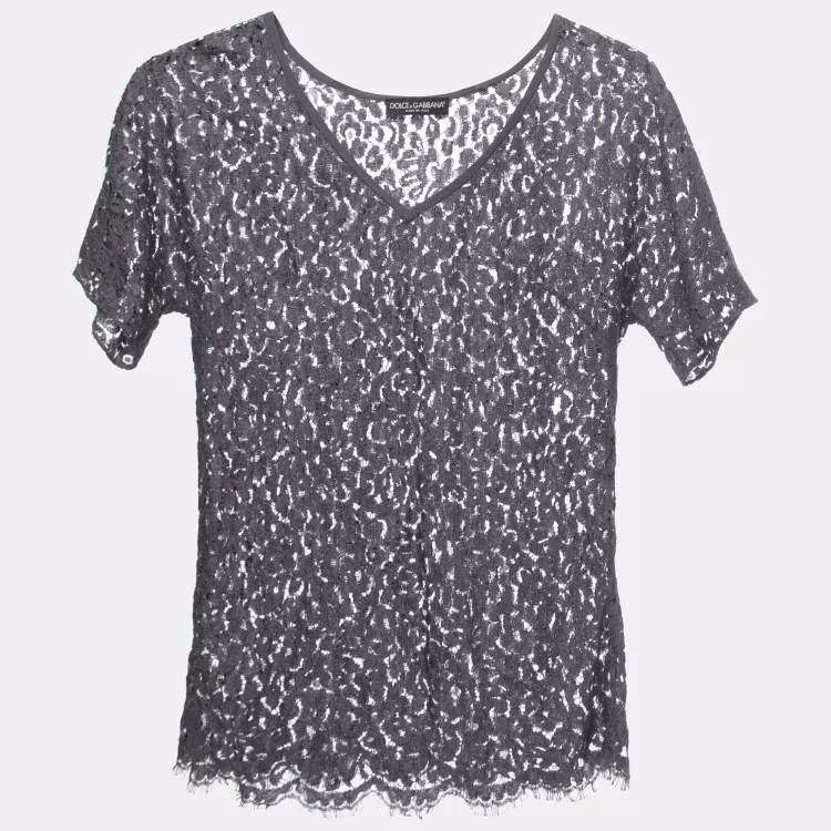 مملوكة مسبقًا توب دولتشي أند غابانا دانتيل رمادي ياقة V صغيرة