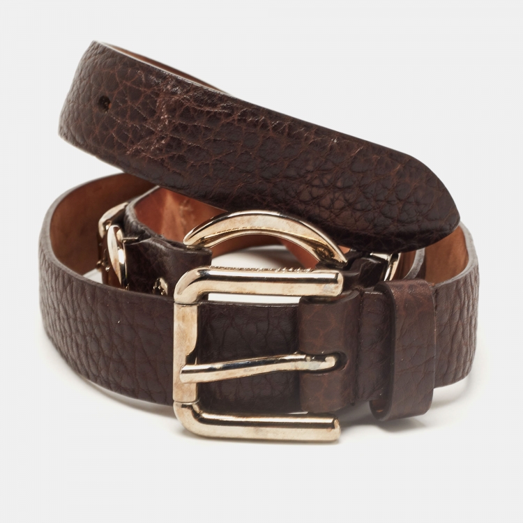 مملوكة مسبقًا Dolce & Gabbana Brown Leather DG Logo Slim Belt 85CM