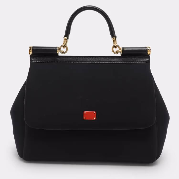 Pre Owned حقيبة يد علوية دولتشي & غابانا ميس سيشيلي متوسطة جلد أسود ونيوبرين