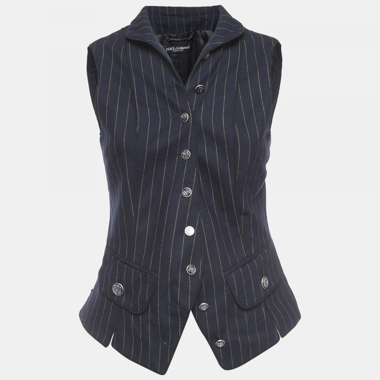 Pre Owned Dolce & Gabbana Navy Blue Striped Wool Buttoned Vest M