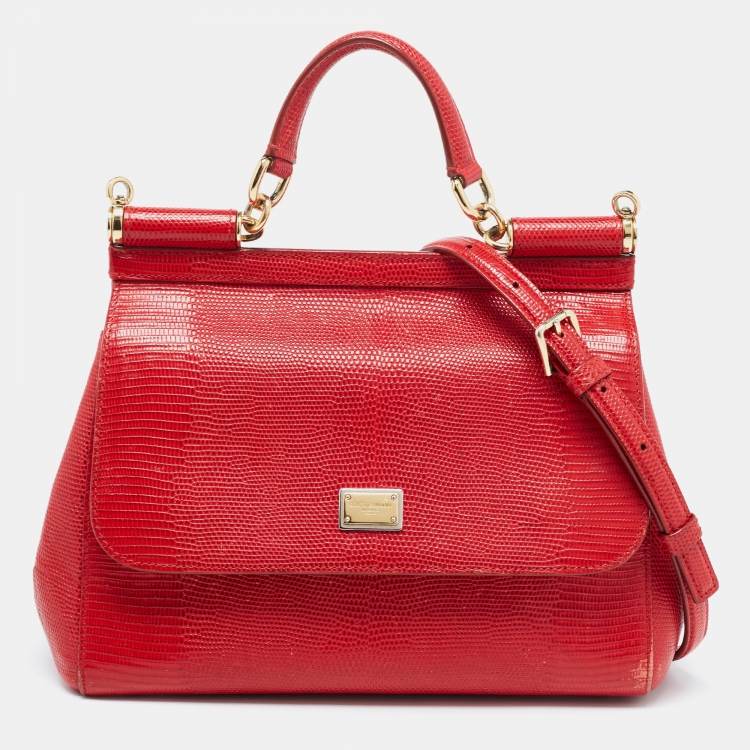 Dolce & Gabbana Red Leather Medium Miss Sicily Handle Bag
