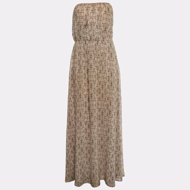 Elisabetta Franchi Beige Abstract Print Chiffon Strapless Maxi Dress M