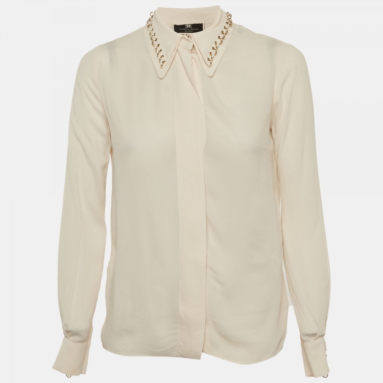 مملوكة مسبقًا Elisabetta Franchi Beige Crepe Studded Collar Shirt S