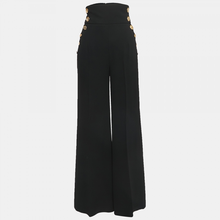 مملوكة مسبقًا Elisabetta Franchi Black Crepe High Waist Wide Leg Trousers M