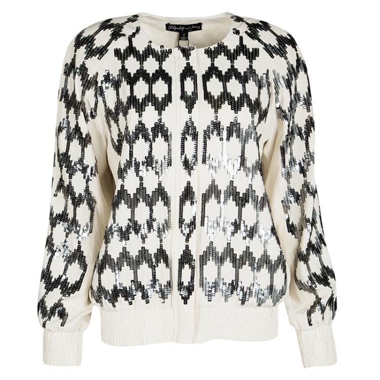 جاكيت إليزابيث أند جيمس حرير كريمي مزخرف ترتر S