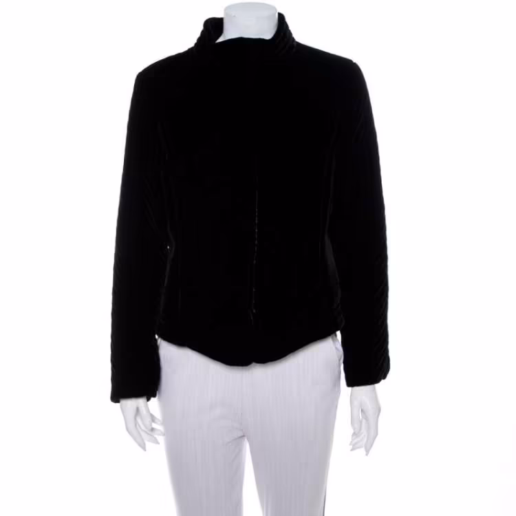 مملوكة مسبقًا جاكيت أمبوريو أرماني قطيفة أسود نمط مبطن بياقة مقاس كبير - لارج