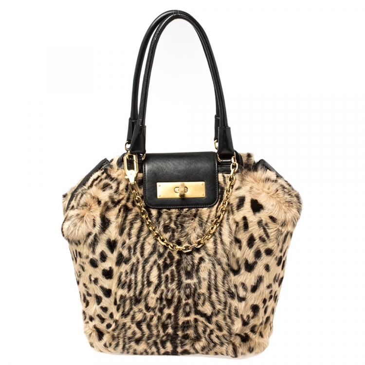 مملوكة مسبقًا حقيبة يد إسكادا قلاب قفل دوار جلد وفرو صناعى طباعة نمر بيج / أسود