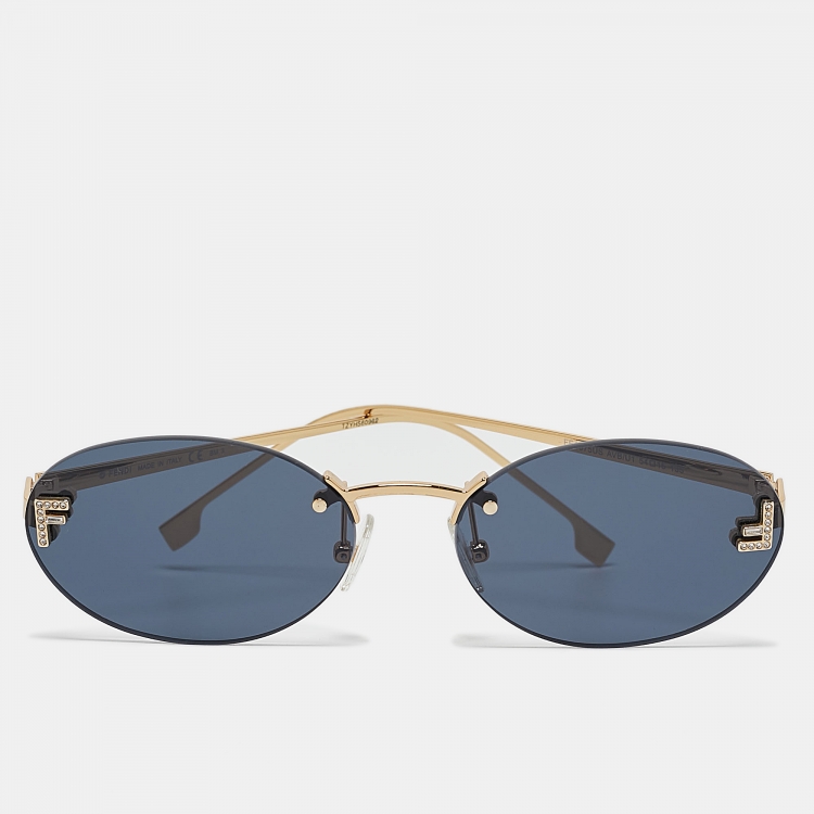 Pre Owned Fendi Gold Tone/Blue FE4075US Fendi First Crystal Oval Sunglasses