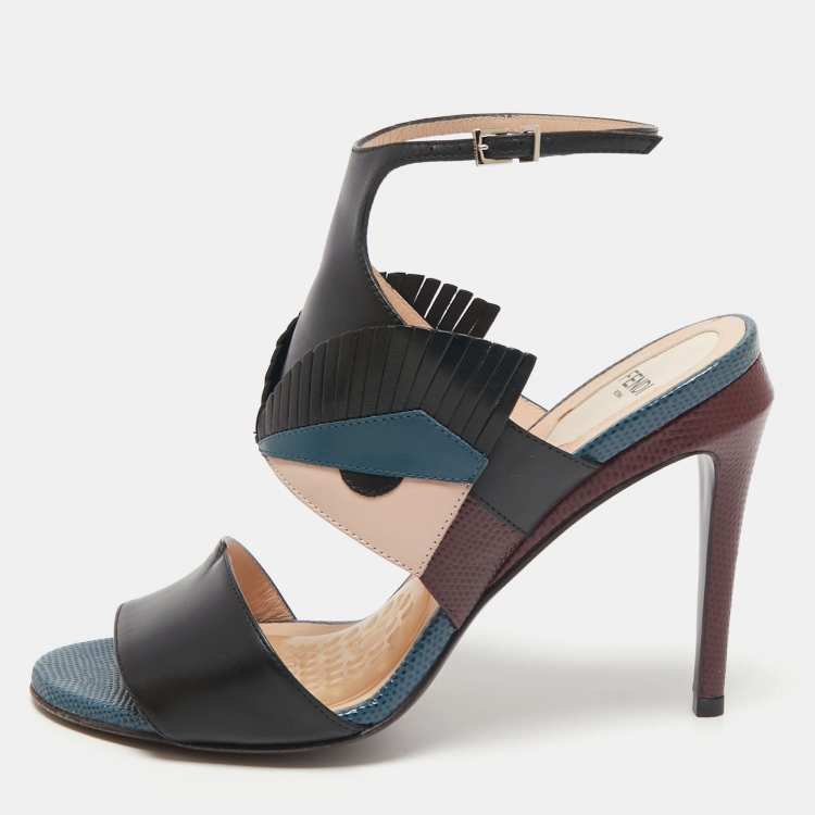 صندل فندي مونستر بجز جلد سحلية وجلد متعدد الألوان سير كاحل مقاس 37
