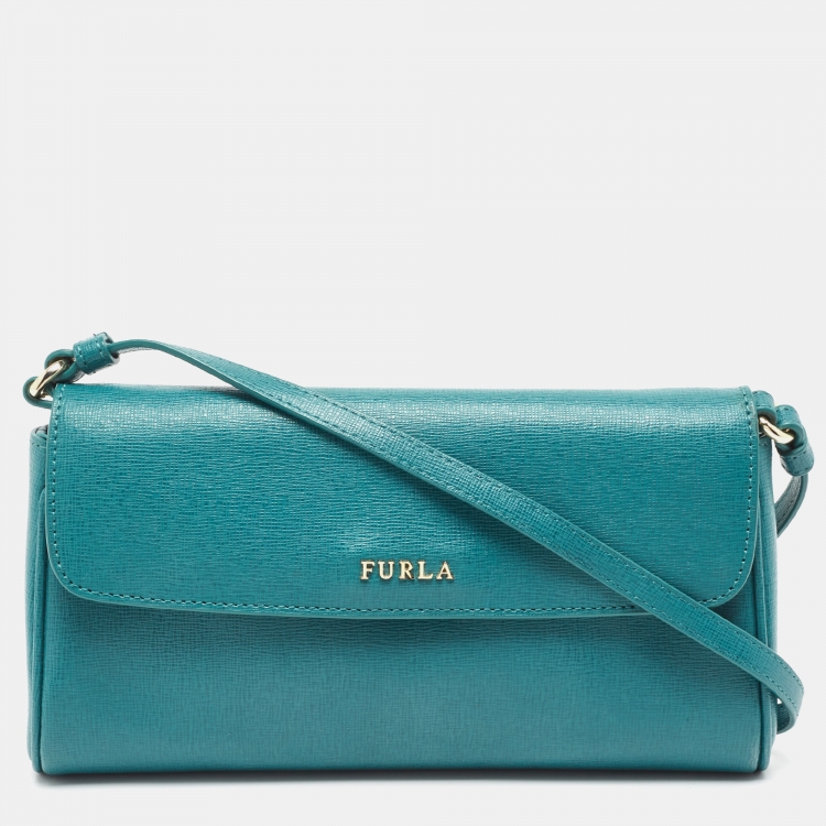 مملوكة مسبقًا Furla Green Leather Flap Clutch Bag