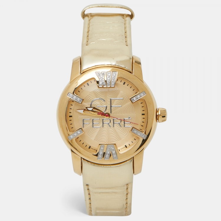 مملوكة مسبقًا ساعة يد نسائية جيانفرانكو فيري 9065بي ألماس ستانلس ستيل لونين ذهبية 40 مم