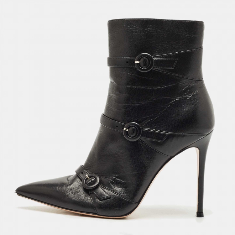 Pre Owned حذاء بوت كاحل جلد أسود جيانفيتو روسي مقاس 38.5