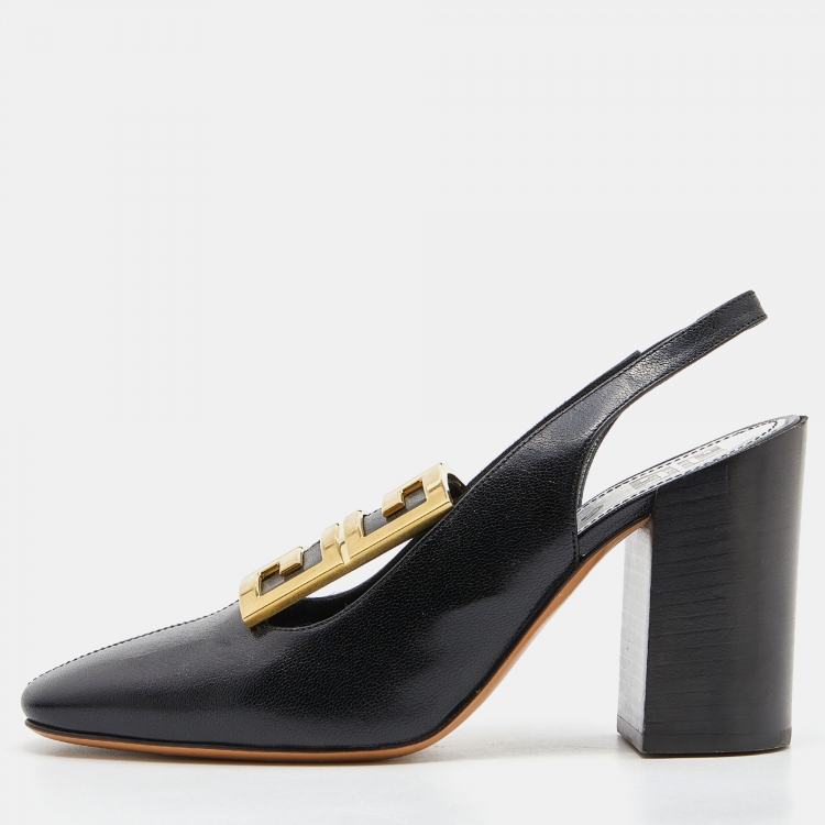 Givenchy Black Leather Buckle Slingback Pumps Size 36