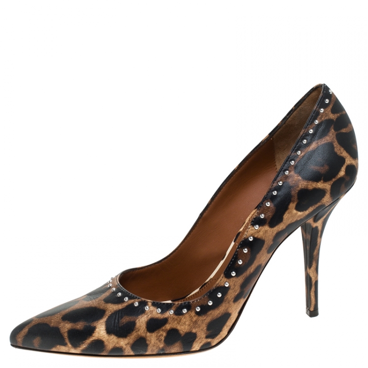 Pre Owned حذاء كعب عالي جيفنشي مدبب مرصع معدن جلد نقش فهد متعدد ا�لألوان مقاس 39