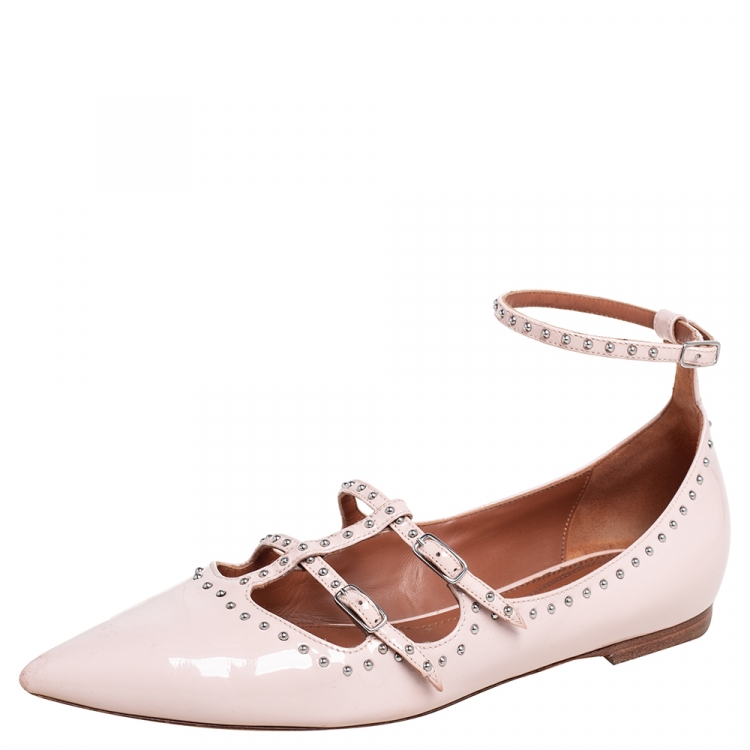 حذاء باليرينا فلات جيفنشي جلد لامع وردي فاتح مرصع ماري جان مقاس 38.5