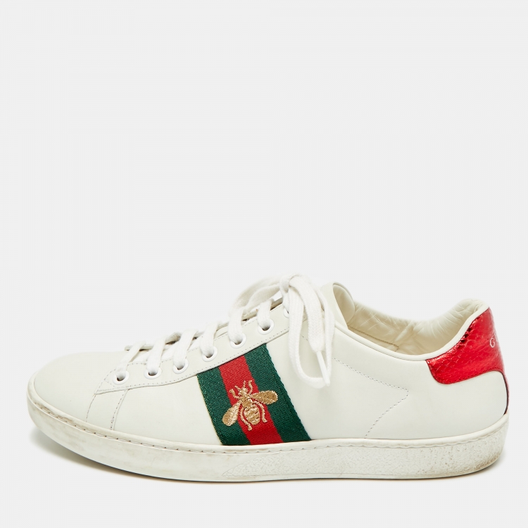 حذاء رياضي غوتشي جلد أبيض ونقشة جلد الأفعى أربطة مقاس 36