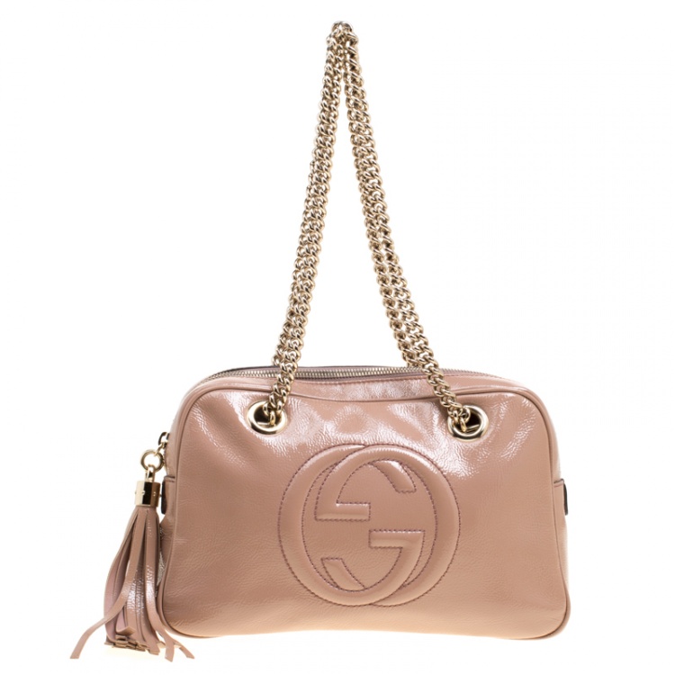 حقيبة كتف غوتشي سوهو جلد بيج متوسطة بسلسلة