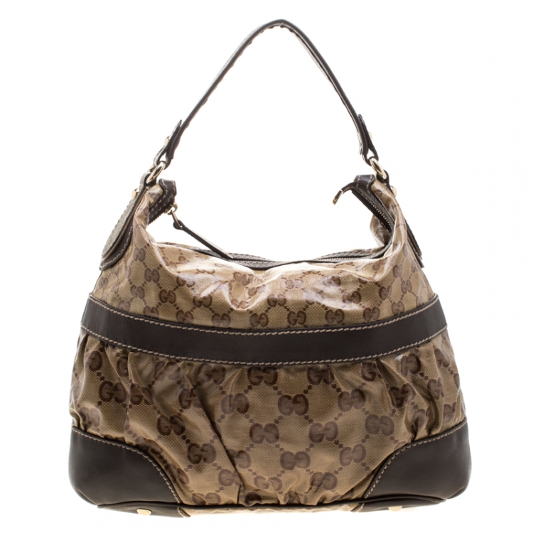 مملوكة مسبقًا حقيبة غوتشي متوسطة ميكس جلد وكانفاس كريستال GG بنية/ بيج