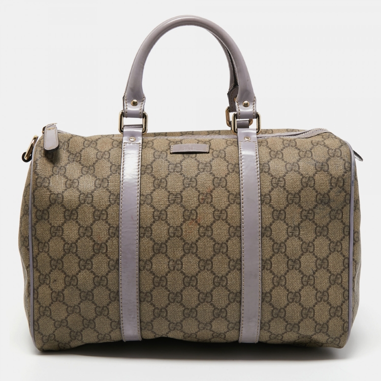 Pre Owned حقيبة غوتشي بوسطن جوي جلد وكانفاس سوبريم GG  فضية/ بيضاء