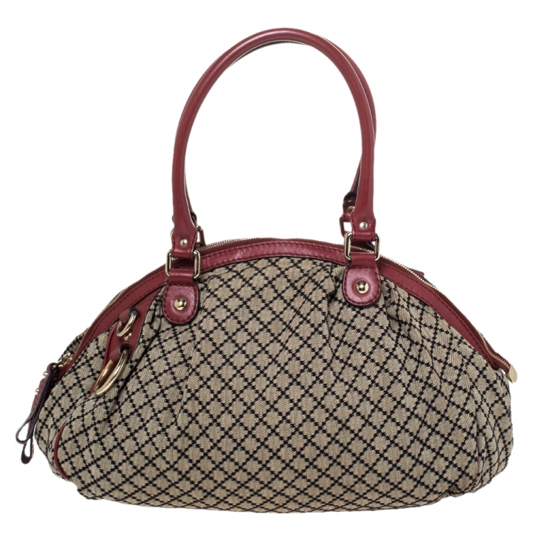 Pre Owned حقيبة غوتشي سوكي كانفاس أحمر/ بيج