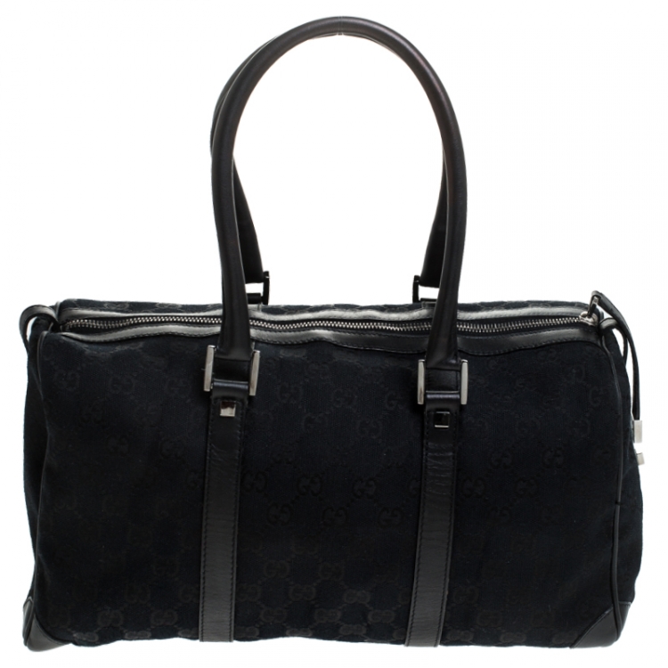 مملوكة مسبقًا حقيبة غوتشي بوسطن جلد وكانفاس GG سوداء